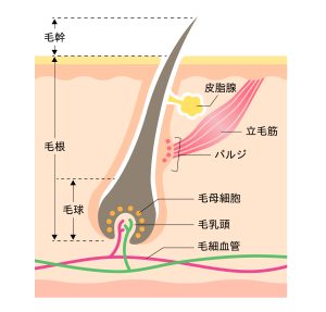 毛根を破壊するので、施術後翌日~数週間でポップアップ現象が起こり、毛がパラパラと抜け落ちます。メラニン色素に反応するので、濃い毛・太い毛に高い効果が高いです。